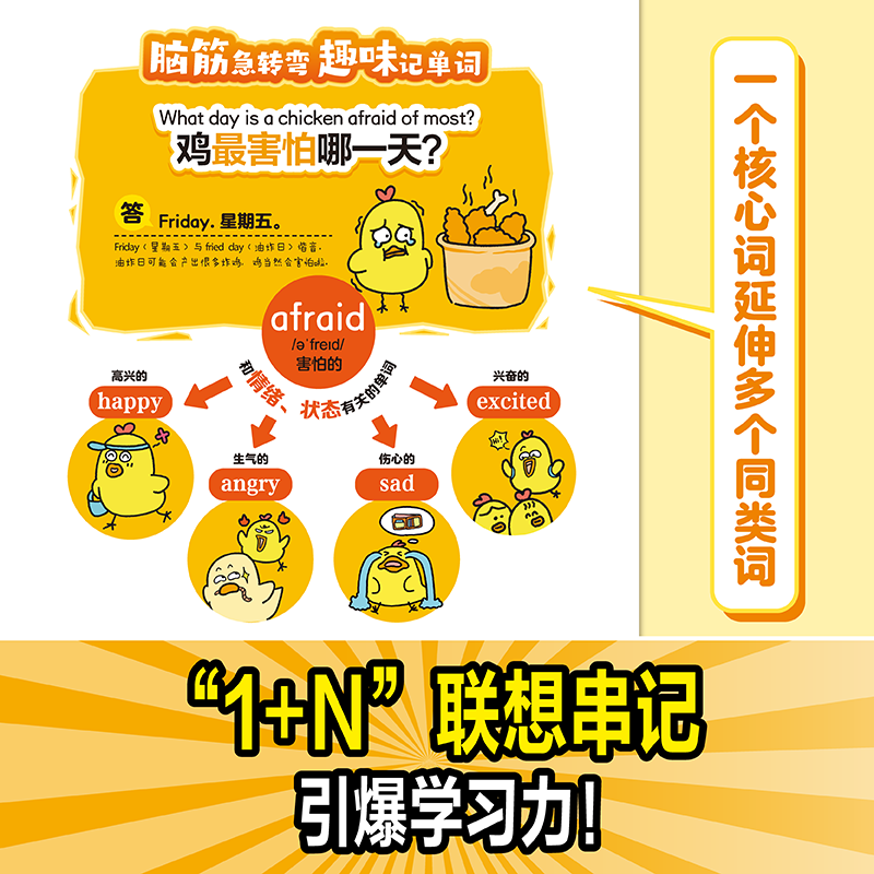 开心 2025脑经急转弯笑背单词小学必背1000英语单词趣味记单词汇总表拆分自然拼读拼写速记手册必备单词本随身记背神器开心童书