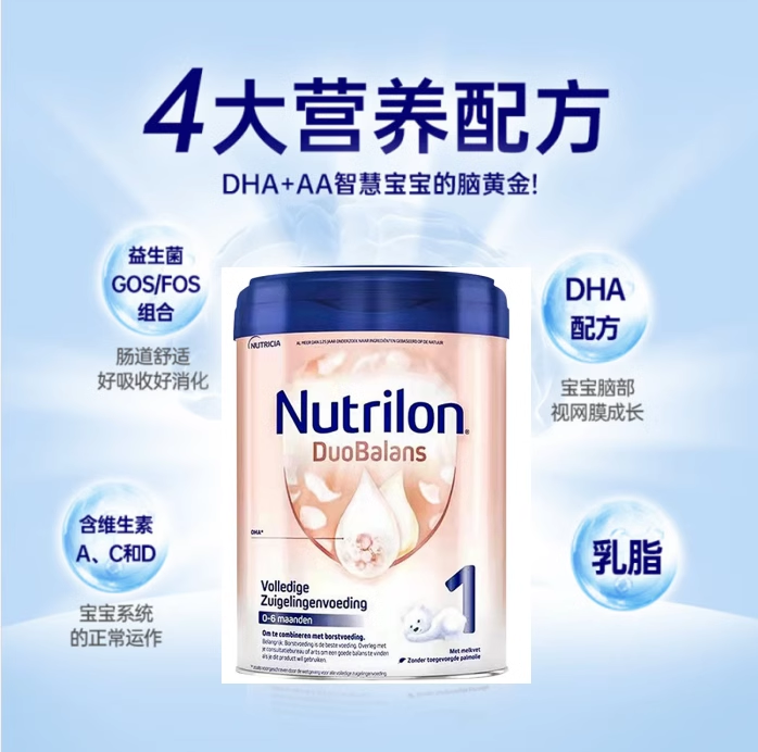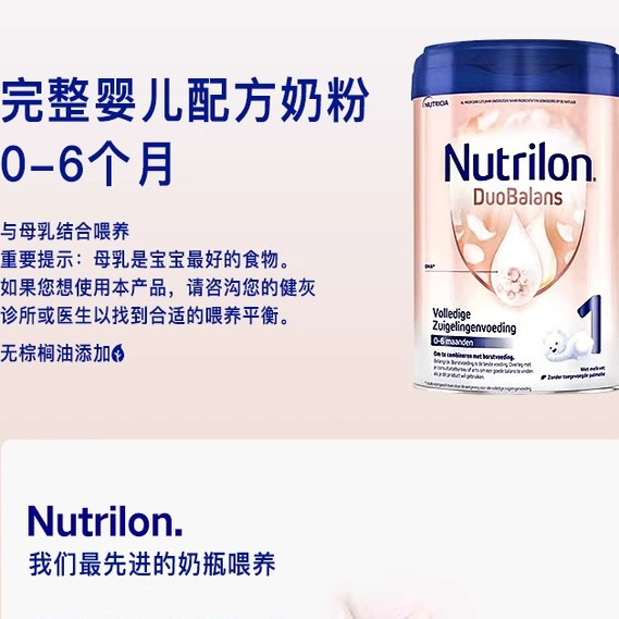 罐 6个月宝宝奶粉诺优能奶粉婴幼儿奶粉800g 荷兰牛栏白金版 1段0