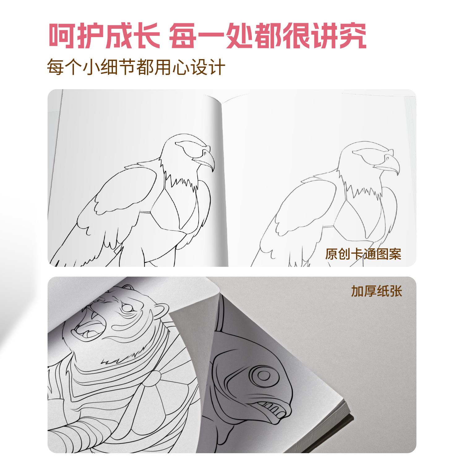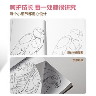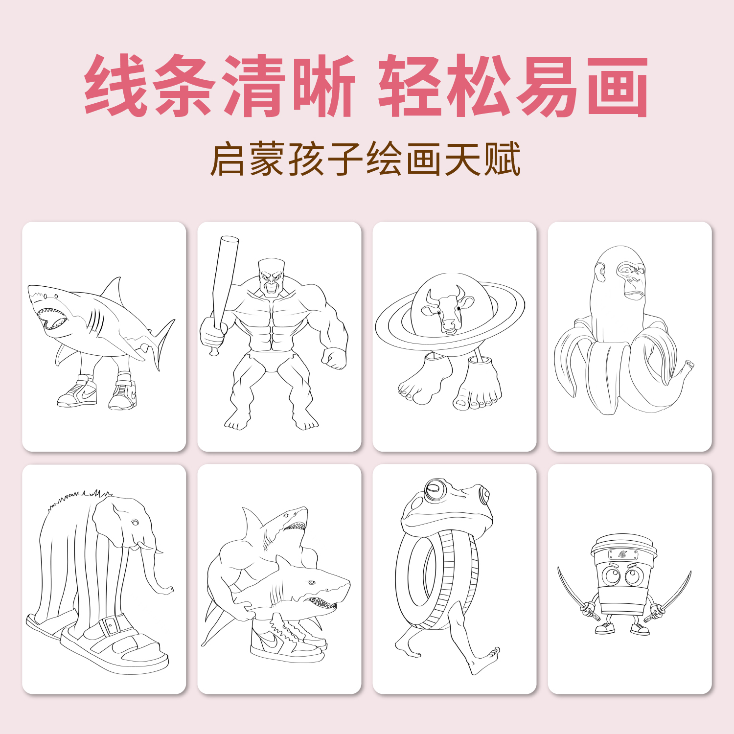 外国山海经描摹本儿童画画本填色描绘本涂色木棍人穿鞋 鲨鱼抽象临