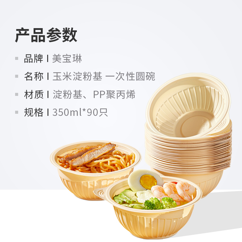 美宝琳可降解一次性碗90只玉米淀粉餐盒打包盒冰粉碗汤碗筷餐具