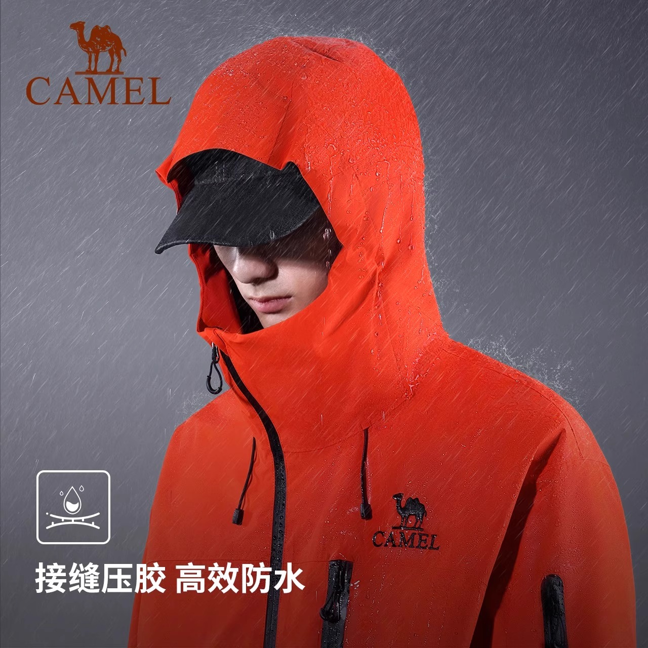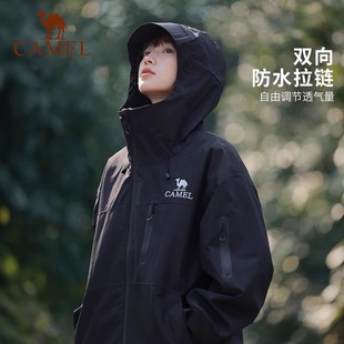 骆驼女装 防水防风连帽硬壳情侣外套登山服男 单层冲锋衣2025秋新款