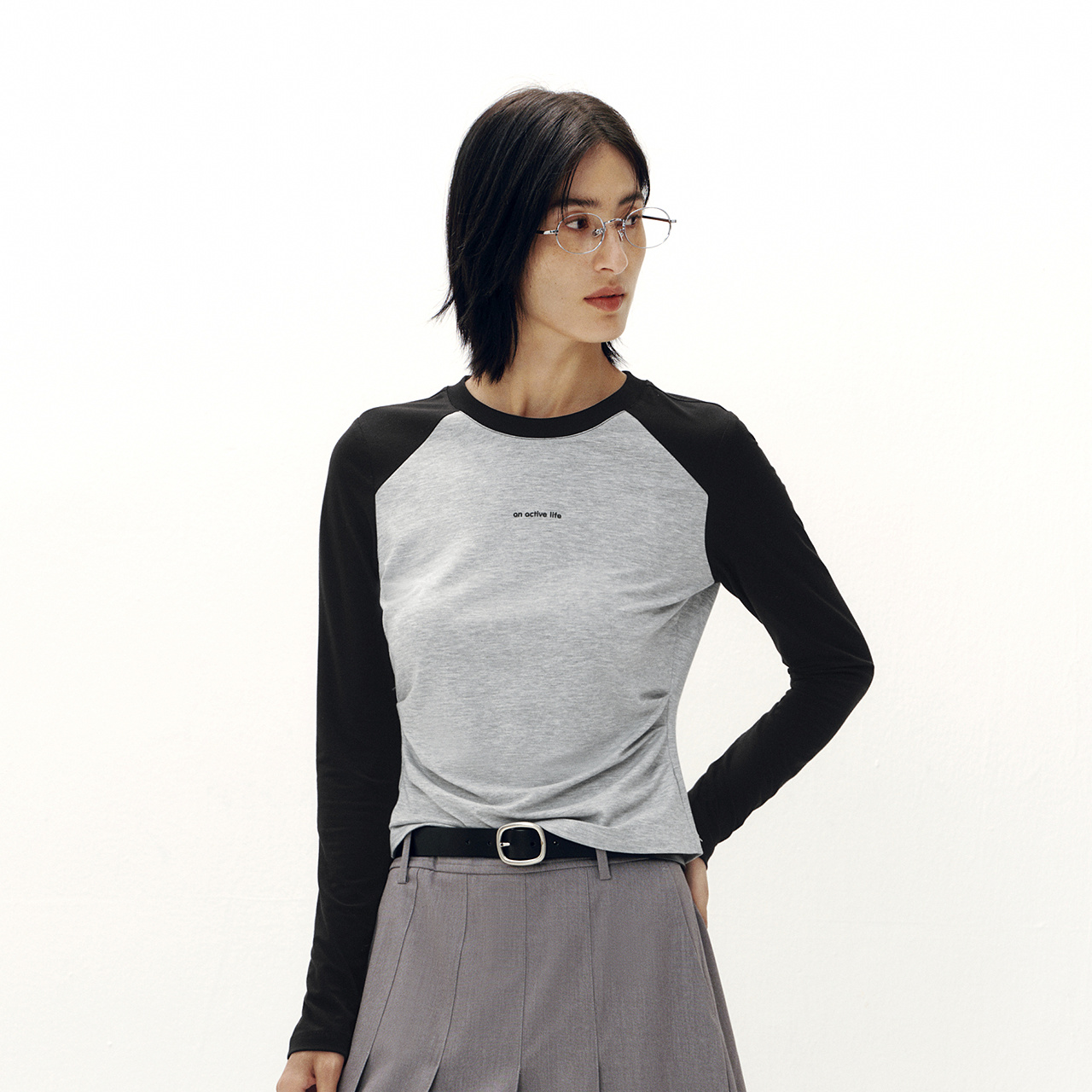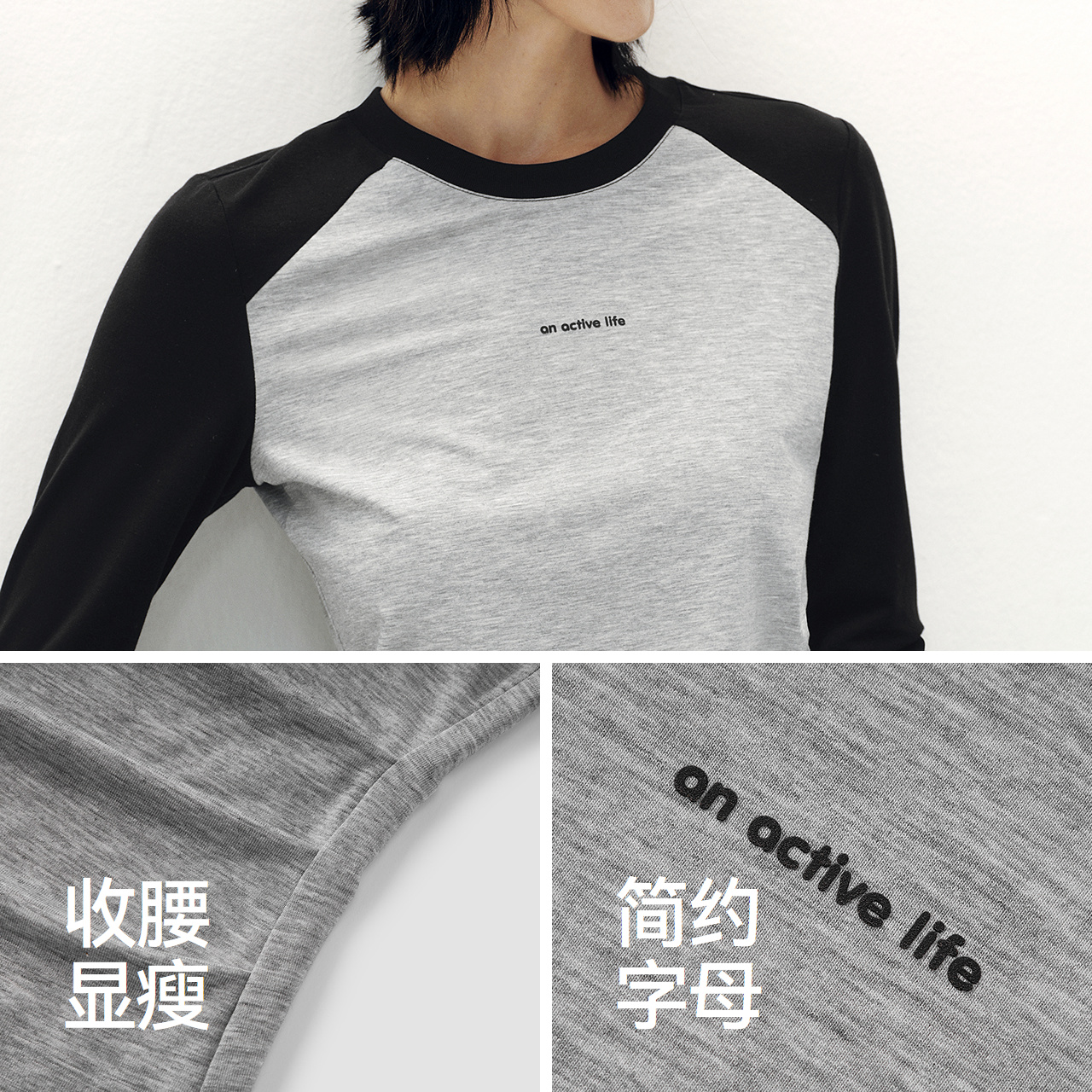 商场同款 收腰2025新款 森马长袖 修身 吸湿速干字母秋装 T恤女短款