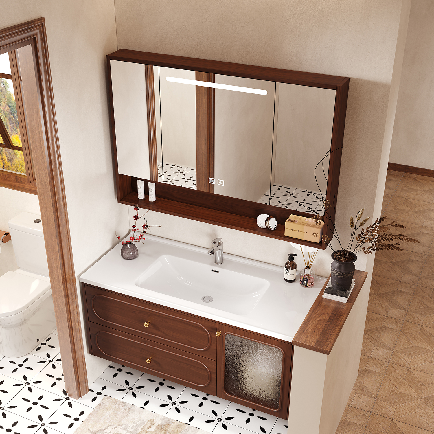 橡木烤漆中古风浴室柜2025新款 陶瓷一体盆卫生间洗脸盆洗漱台组合