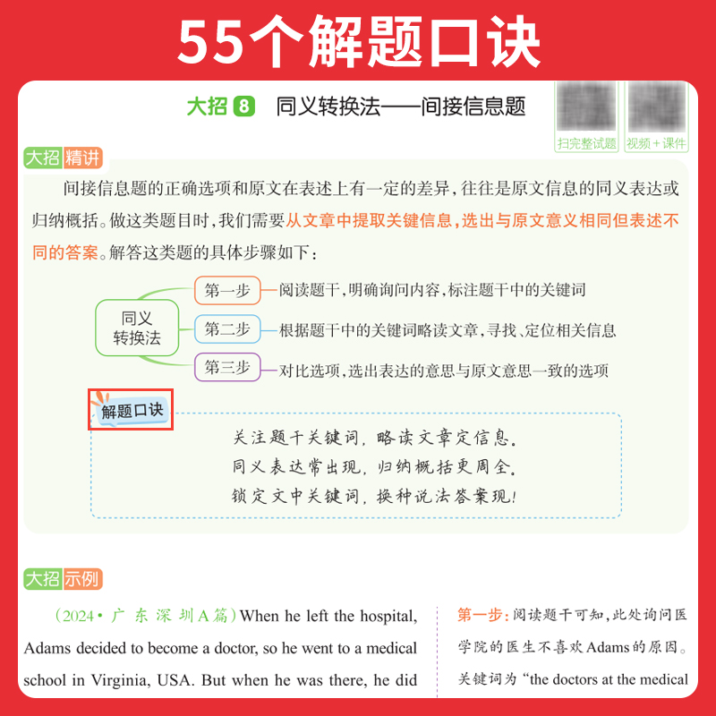 2026一本初中英语解题技巧55招英语阅读理解四合一完形填空阅读理解任务型阅读短文填空七八九年级上下册通用7 9年级趣味语法单词