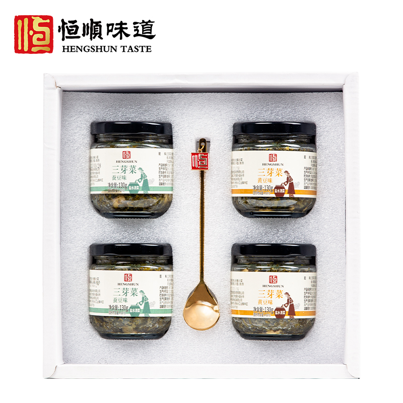 黄豆味蚕豆味下饭菜咸菜 4小瓶瓶装 恒顺味道三芽菜礼盒装 酱菜130g