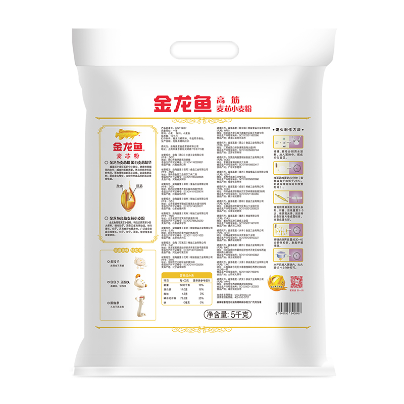 金龙鱼高筋麦芯小麦粉5kg家用面包粉馒头饺子面条高筋面粉