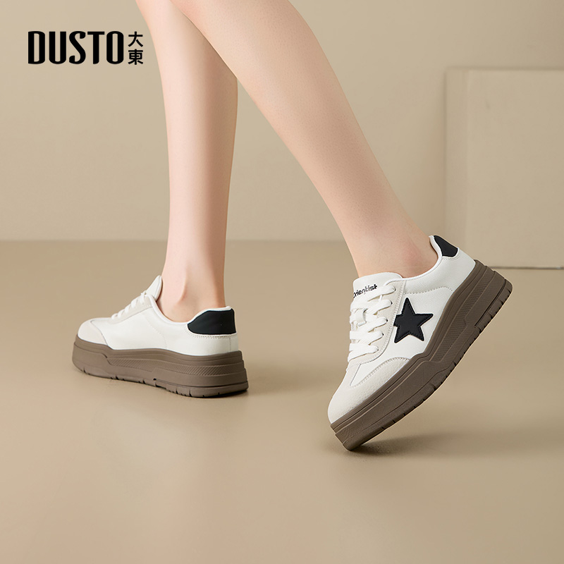 新款 2025秋季 休闲平底中跟系带圆头材质拼贴Q1334 女鞋 大东德训鞋