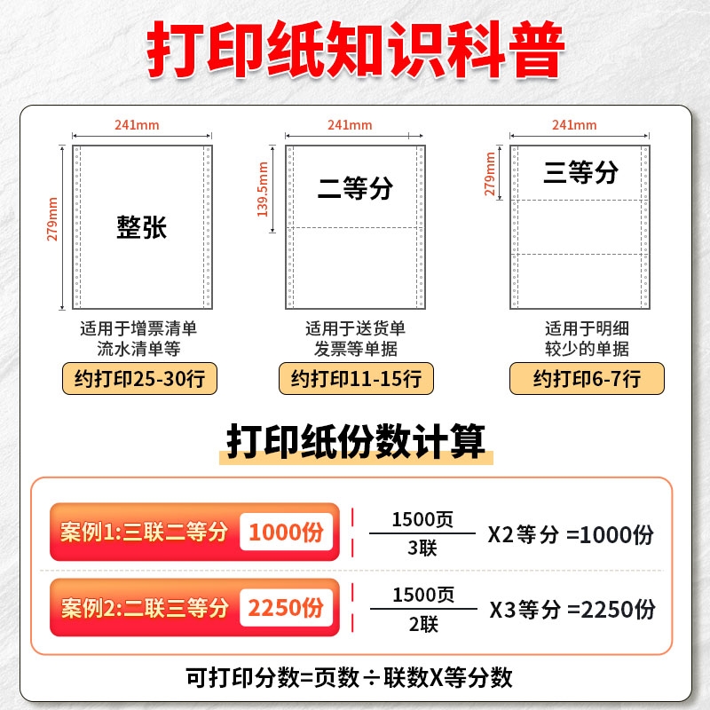 针式 打印机专用纸五联六联打印单送货出库单发票清单空白凭证打印纸 打印纸三联二等分二联四联三等分电脑针式