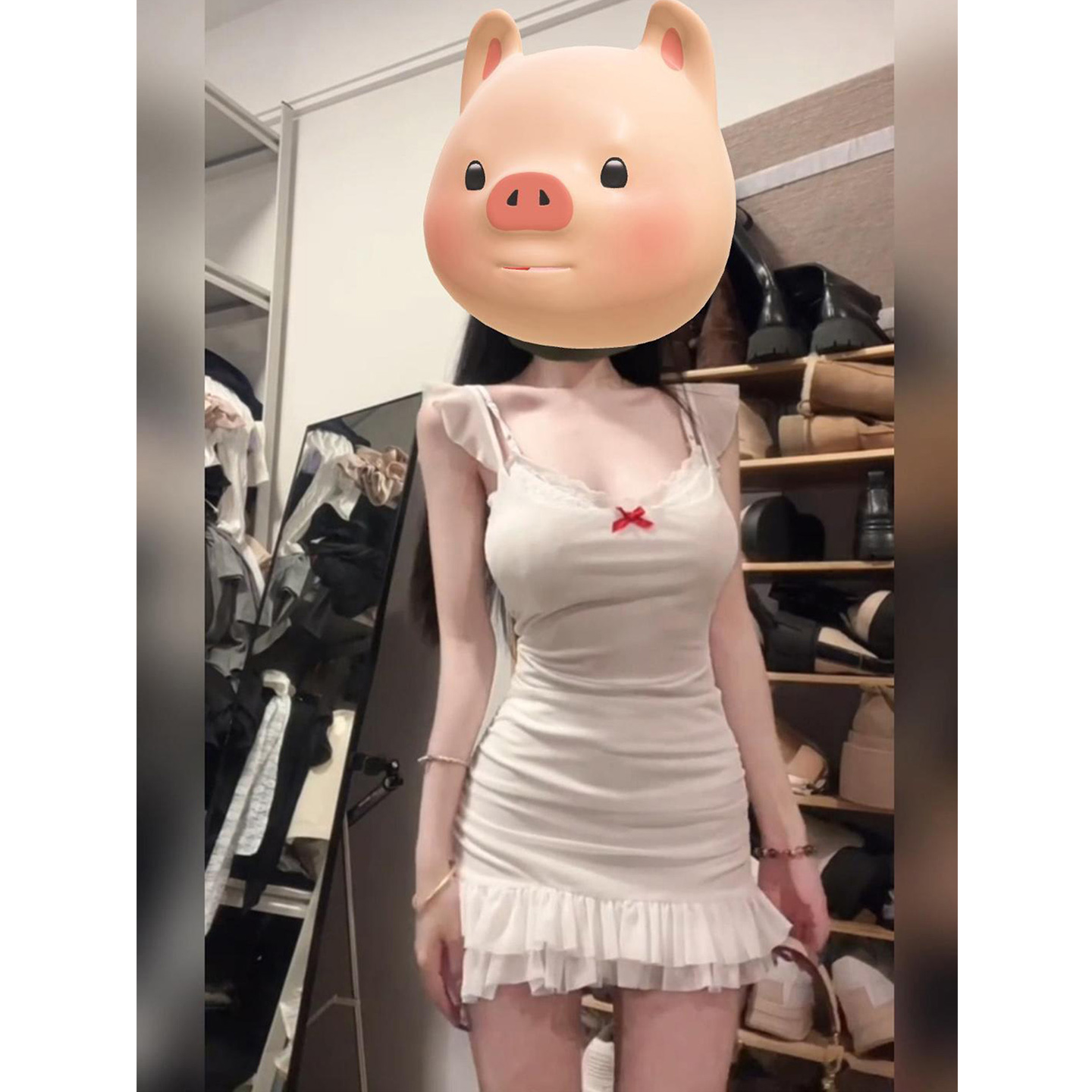 性感包臀短裙 修身 XZY 微胖纯欲辣妹蕾丝拼接吊带连衣裙女25年夏季