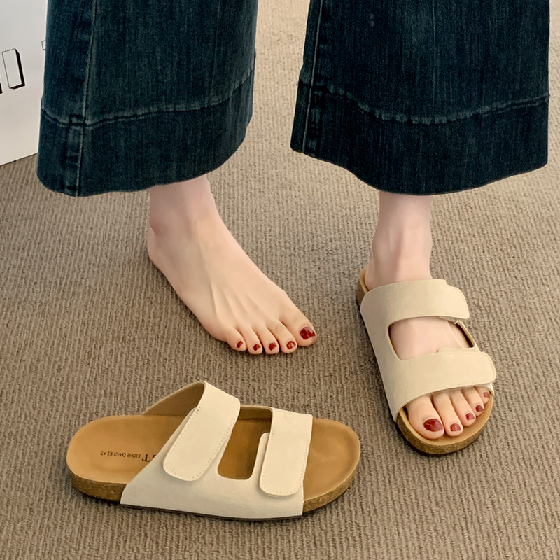 时尚 法式 厚底休闲沙滩凉鞋 女夏外穿2025新款 孕妇一字拖 勃肯凉拖鞋