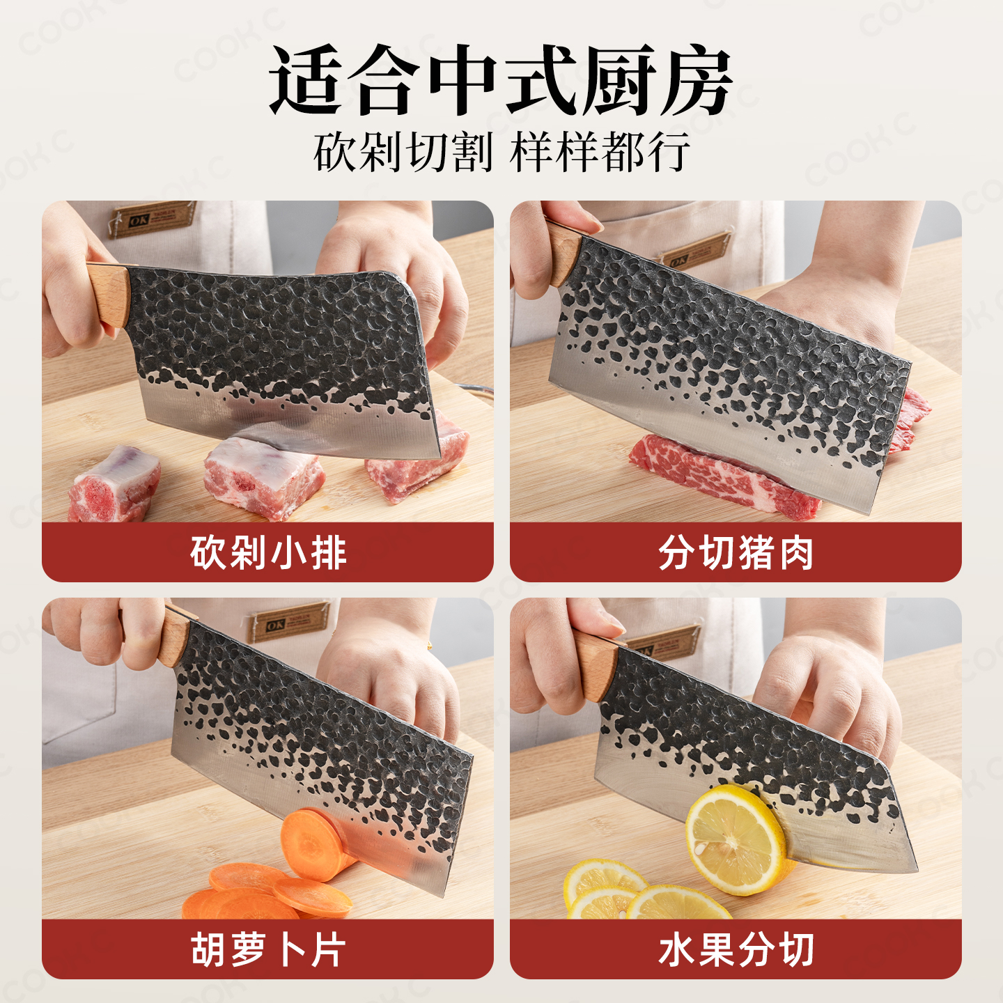 家用切菜切肉轻型塑料手柄锻打锋利菜刀