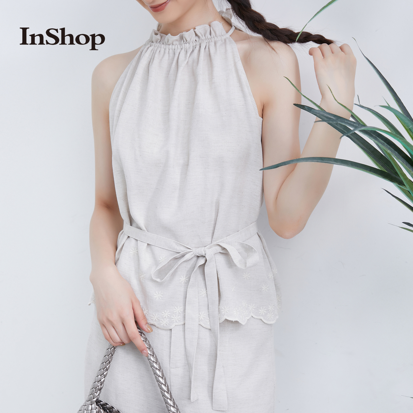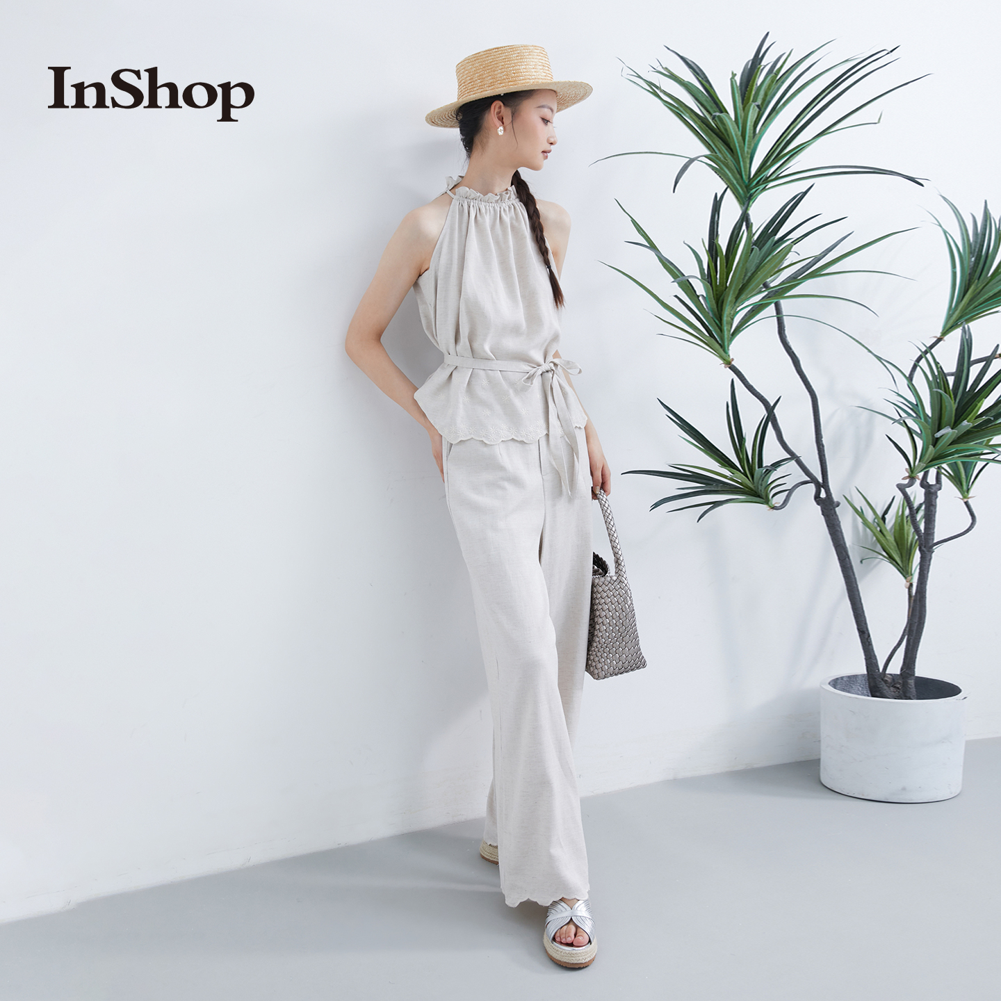 优雅通勤抽褶立领绑带上衣女阔腿裤 INSHOP新款 两件套 商场同款