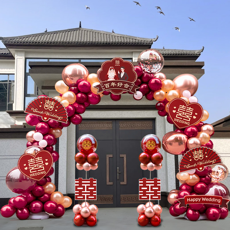 结婚气球拱门网红婚礼布置装 饰婚庆场景室外酒店门口农村庭院路引