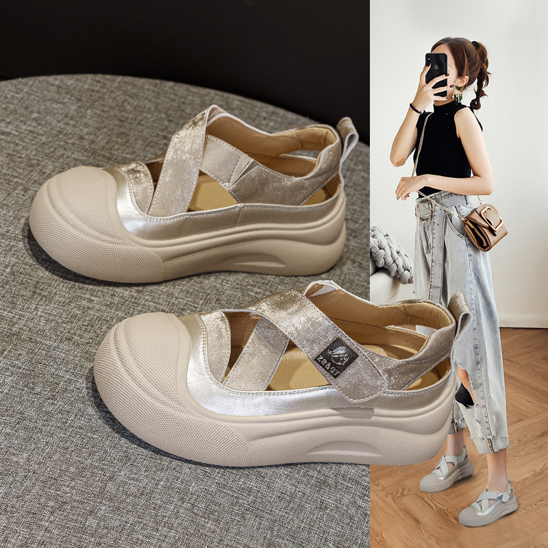 子爆款 包头凉鞋 2025年超火镂空透气休闲厚底增罗马凉鞋 新款 女夏季