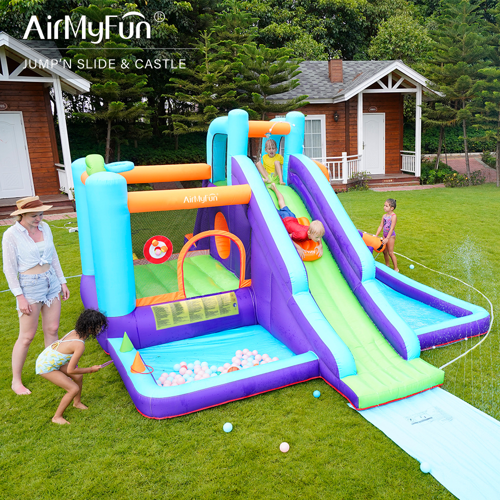 AirMyFun喷水充气城堡户外儿童蹦蹦床滑滑梯钻洞滑水道跳跳床玩具