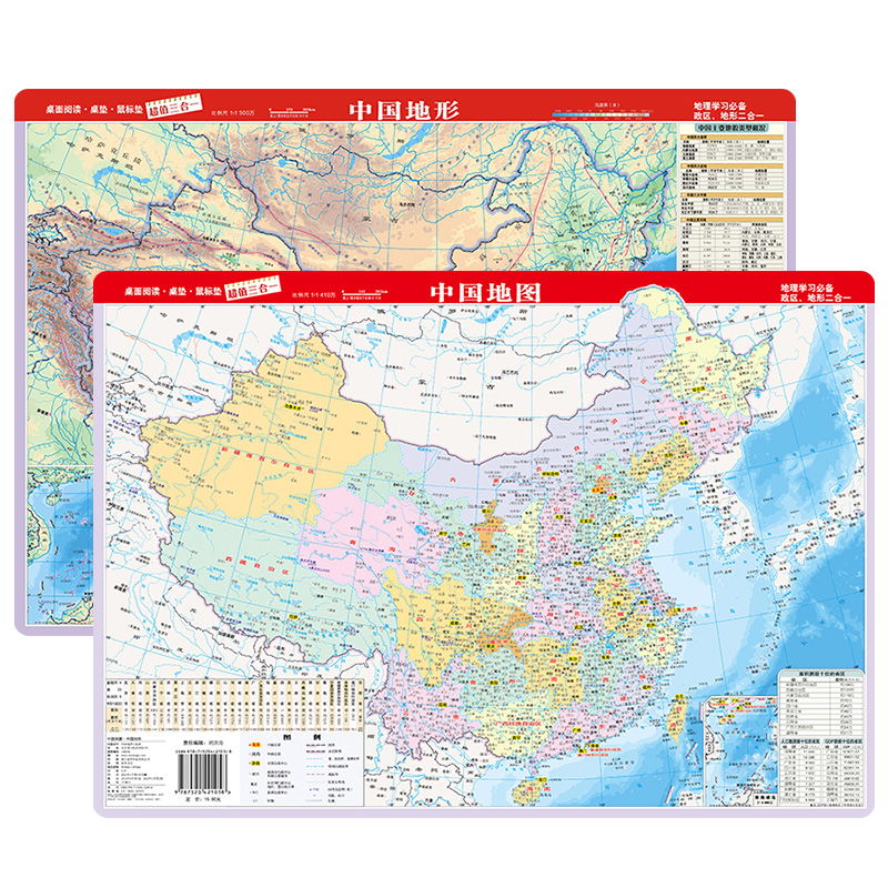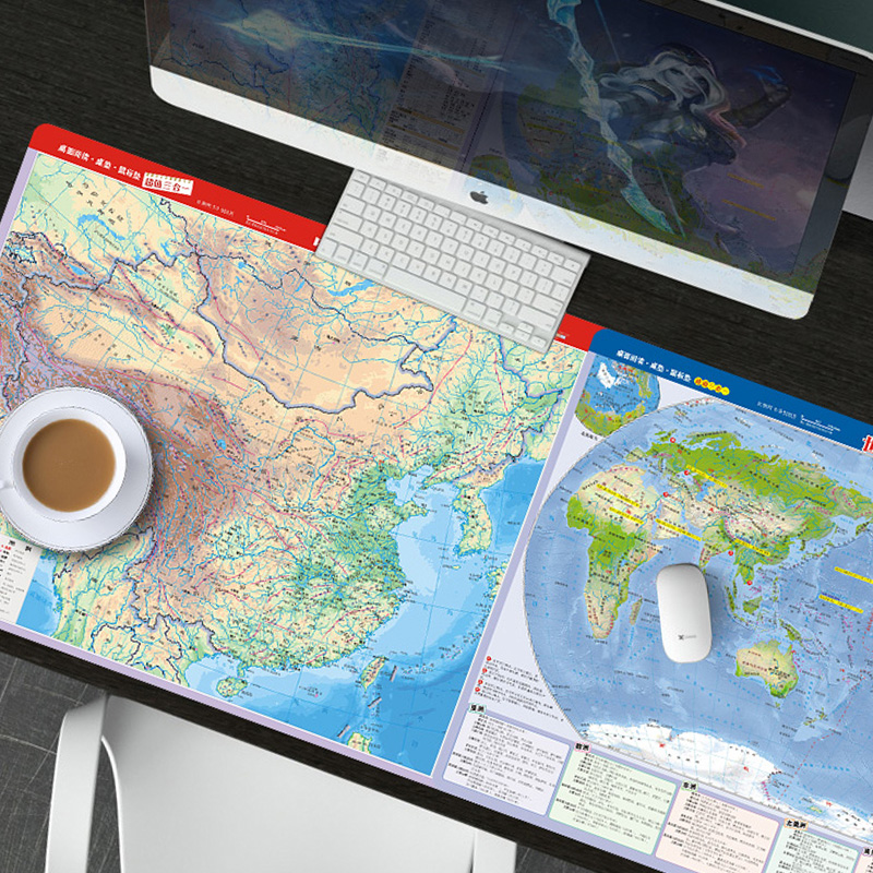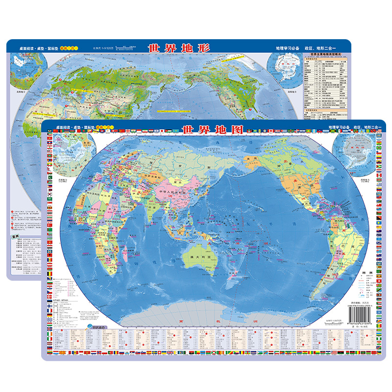 2025世界地图 世界地形中国地图中国地形—鼠标垫地图PP材料精美印刷 桌面阅读 鼠标垫超值3合一 2幅 桌垫 地理学习桌图 套装