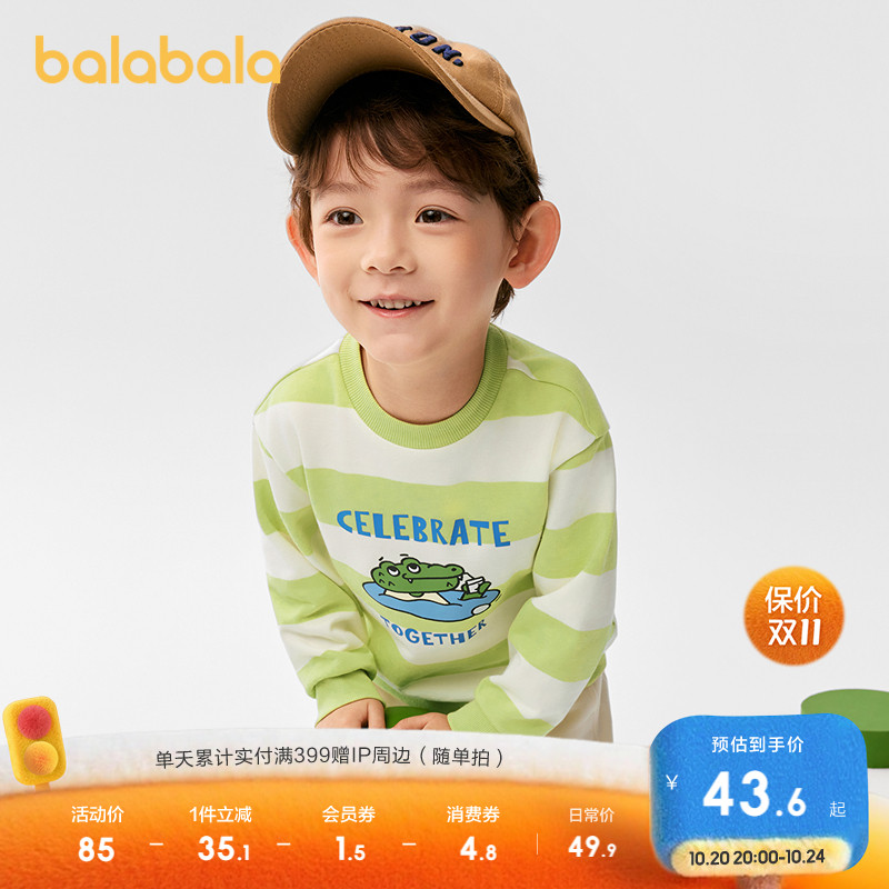 巴拉巴拉童装 t恤宽松卡通印花上衣潮 儿童卫衣男童女童2025春秋装
