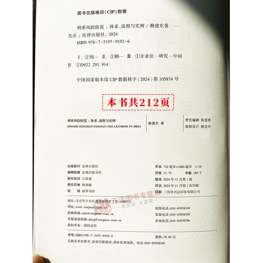 赖建东 刑事风险防范体系流程与实例 企业刑事风险防范体系具体实操流程和模式 方案参考 社9787519791926 正版 法律出版 2024新书