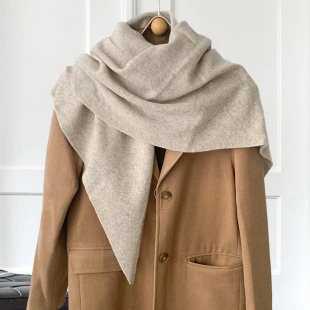 100%澳洲纯羊毛围巾冬季 加大三角外搭披肩简约百搭保暖 女2025新款