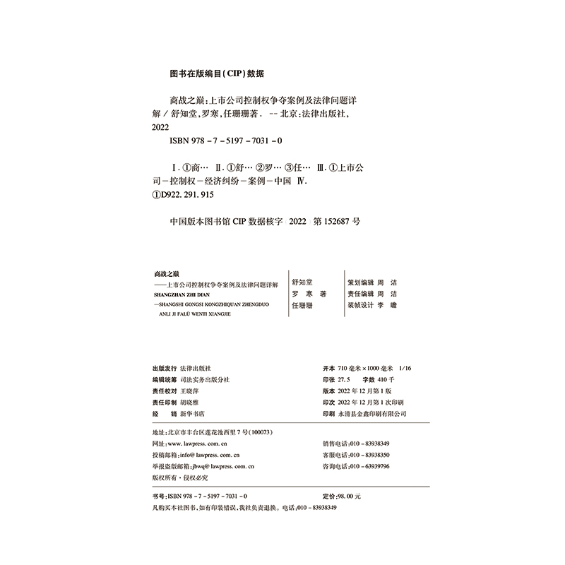 上市公司控制权争夺案例及法律问题详解 舒知堂 罗寒 正版 法律出版 商战之巅 任珊珊 社9787519770310 2022新书