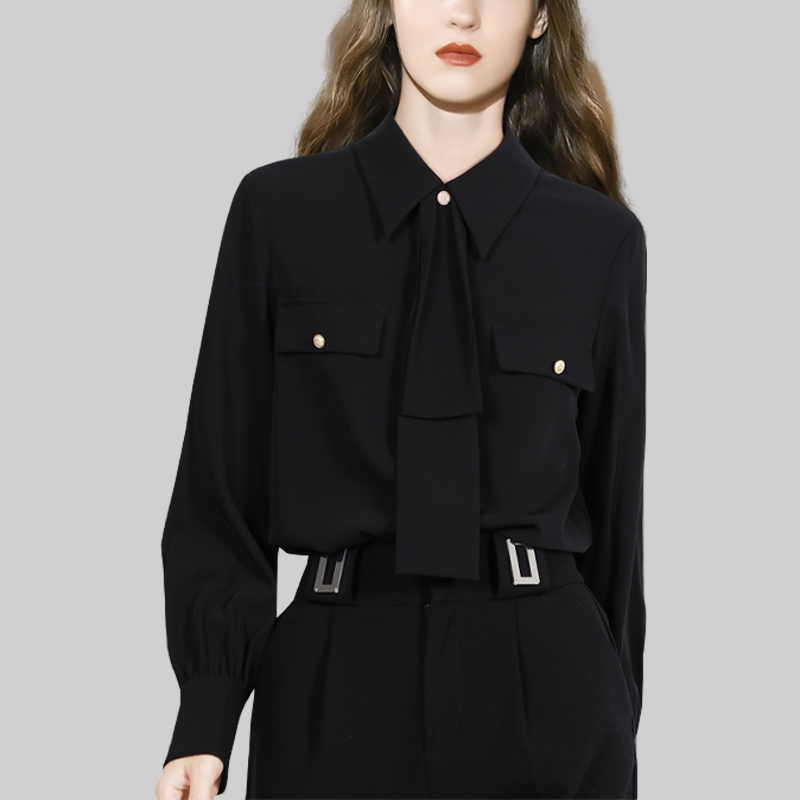 衬衣职业上衣 通勤法式 小个子高级感缎面白色衬衫 女抗皱春秋新款