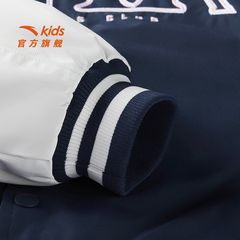 安踏儿童女大童丝光绒运动上衣2025春新款 中大童棒球服厚外套潮酷