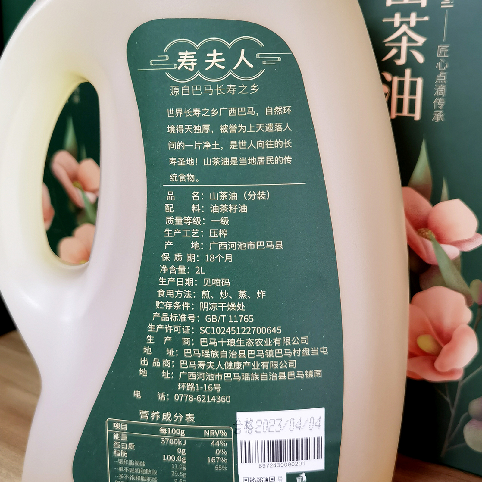 一级压榨茶籽油山茶籽油茶油 大桶 寿夫人广西巴马山茶油2L