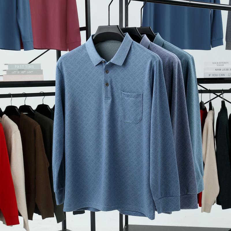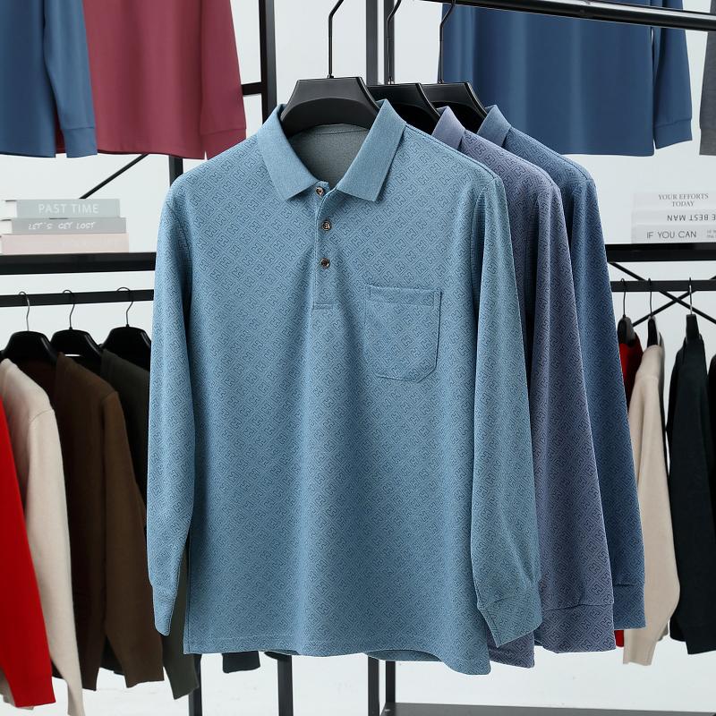 长袖 新款 POLO衫 中年爸爸装 男士 真口袋上衣服T恤打底衫 2025春秋季