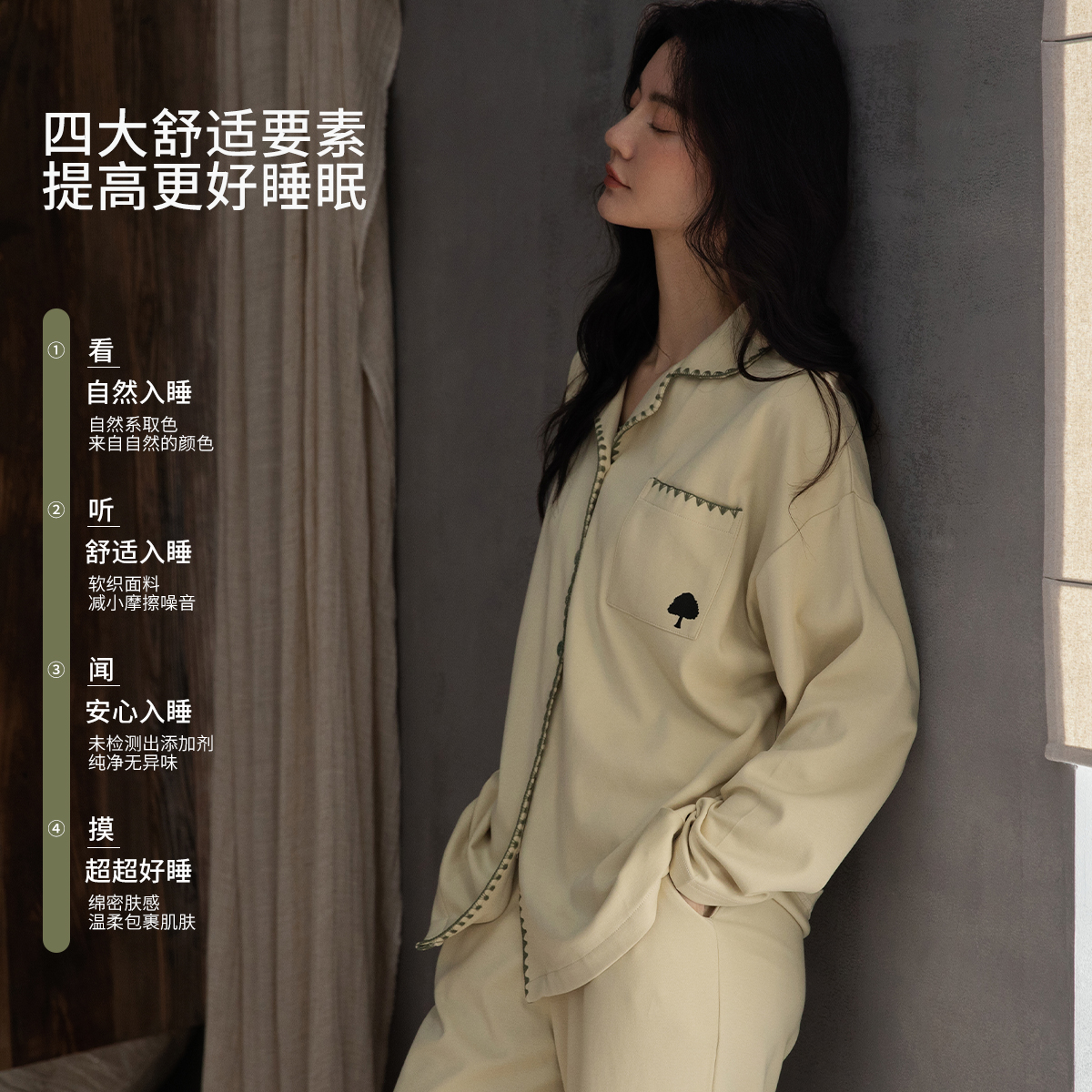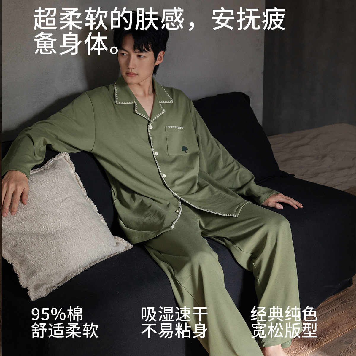 简约纯色高级感男女士套装 纯棉长袖 情侣睡衣春秋季 乐姿梦25年新款