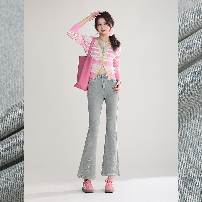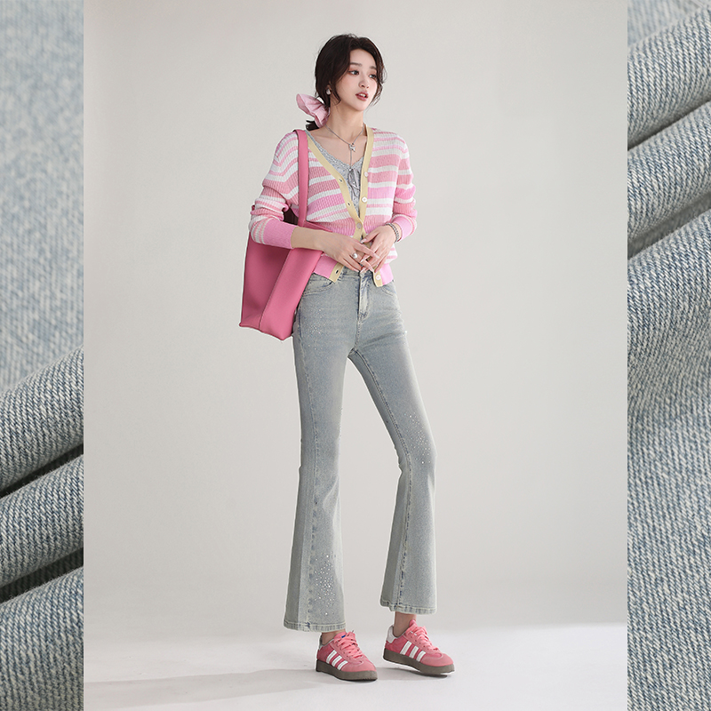 丹宁蓝色防褪色高腰显瘦直筒裤 女2025年春秋新款 子 阔腿牛仔裤 窄版