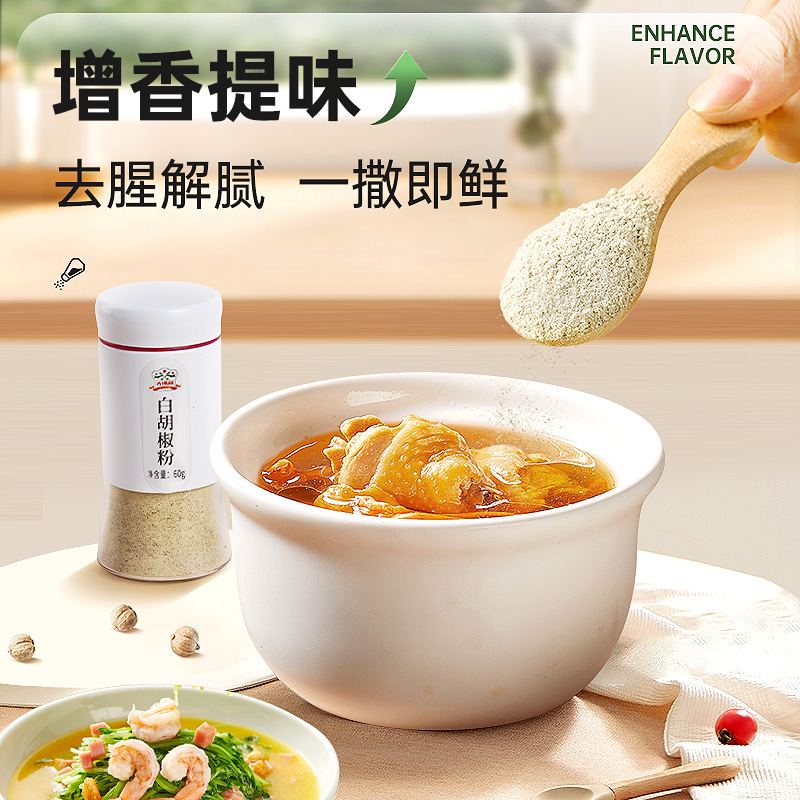 单件 吉得利纯白胡椒粉海南正宗黑胡椒家用调味煲汤烧烤撒料 包邮