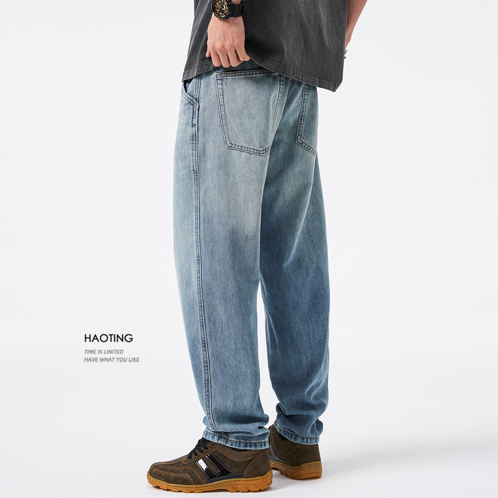 男士 冰丝裤 春夏季 宽松小脚哈伦裤 薄款 豪霆.莱赛尔宽松锥形牛仔裤