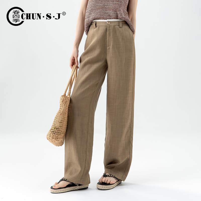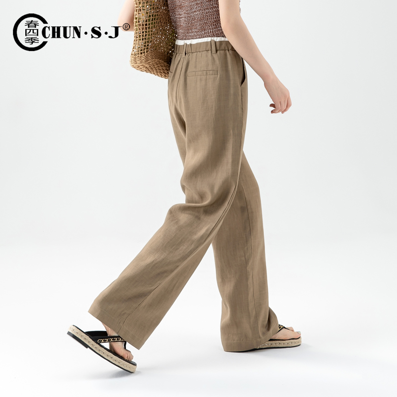 垂感休闲宽松直筒拖地裤 夏薄款 子 女2025新款 人字纹天丝亚麻阔腿裤