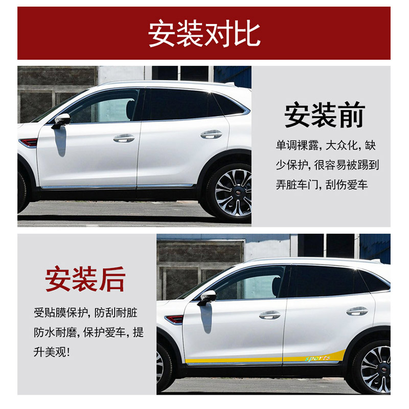 适用于红旗HS5改装 饰条遮划痕贴 车身裙边拉花车贴纸HS5车门边贴装