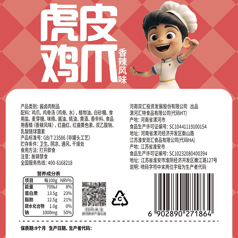 双汇虎皮鸡爪105g 零食即食鸡爪子 袋卤味凤爪香辣五香独立小包装