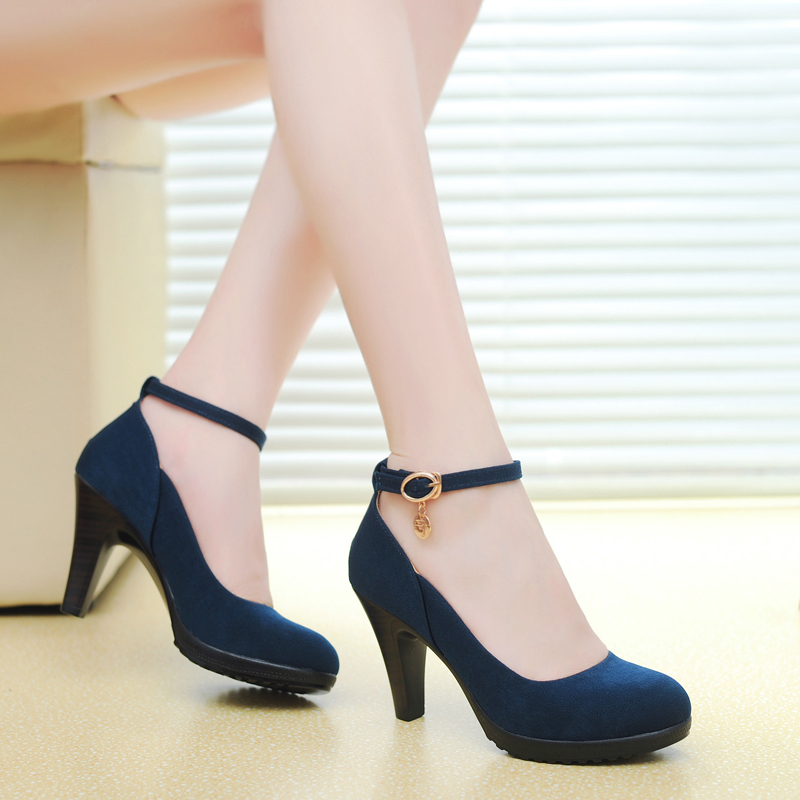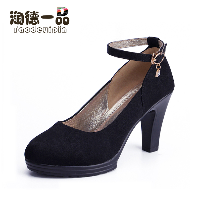 鞋 女鞋 新款 纯色OL气质走秀布鞋 北京布鞋 职场黑色防水台高跟工装