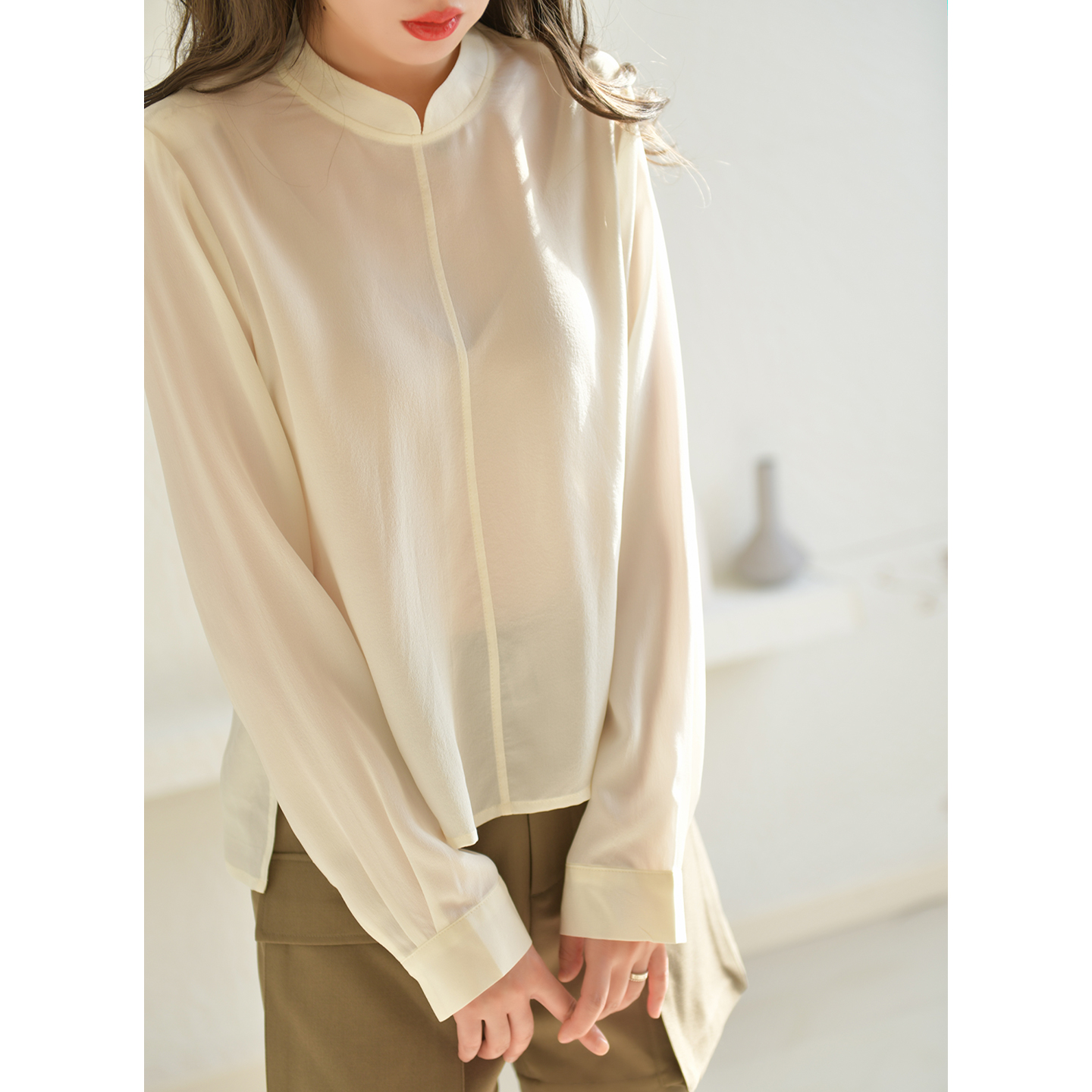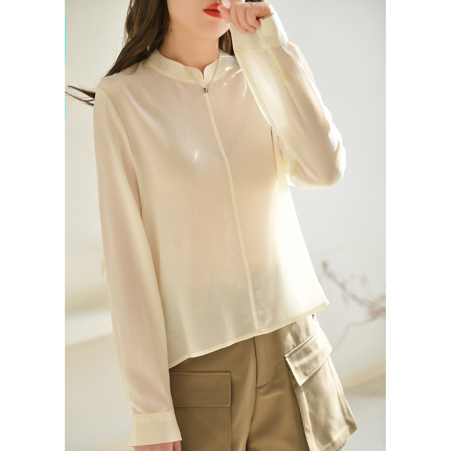 女装 GESGOO气质通勤真丝衬衫 立领上衣秋季 纯色桑蚕丝显瘦法式 长袖