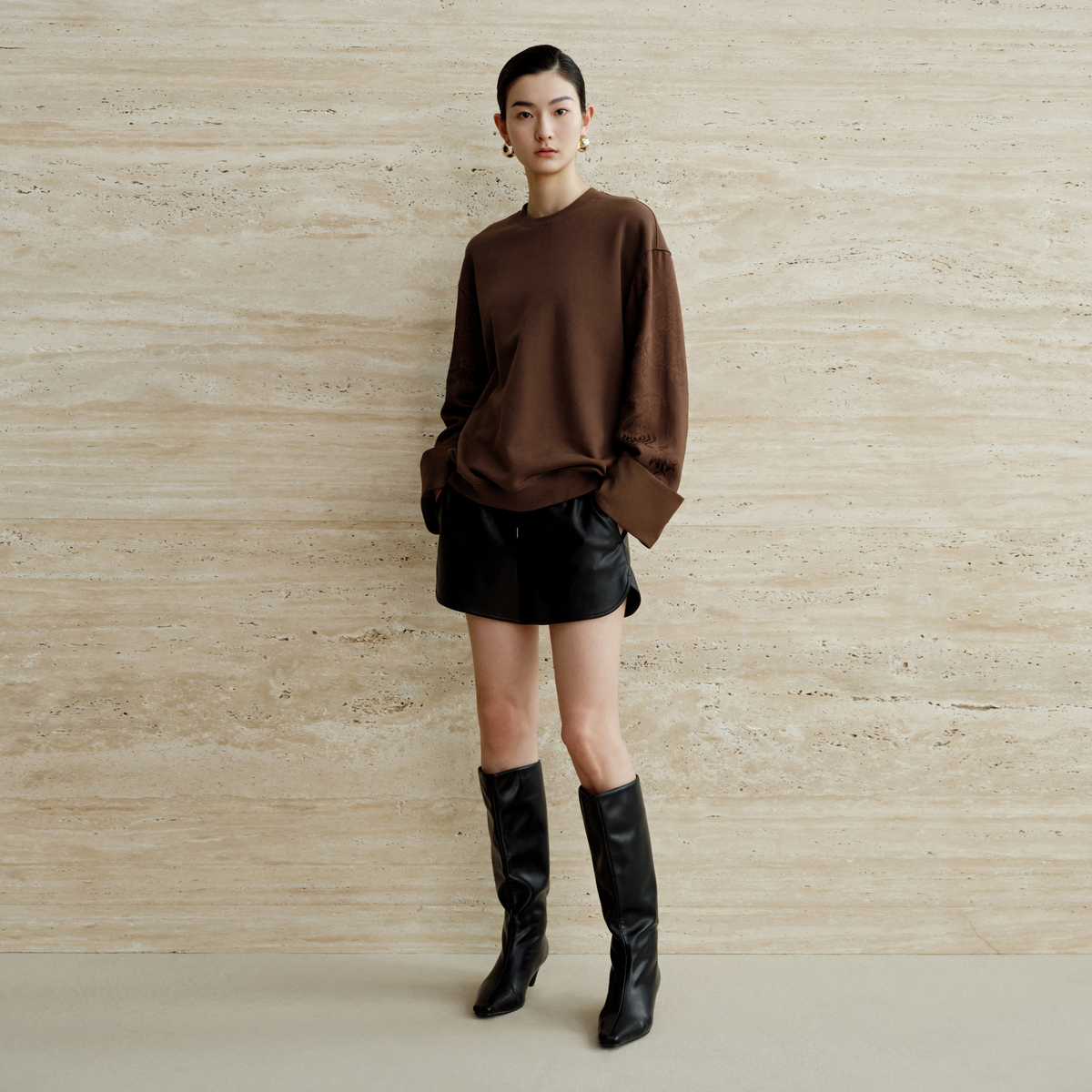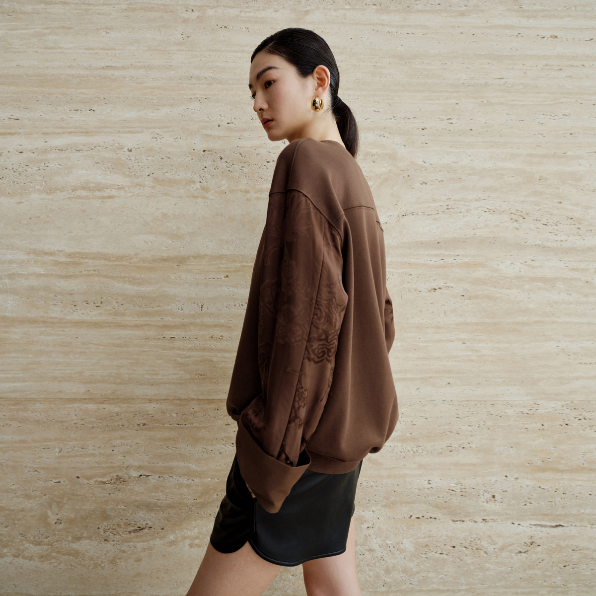 卫衣女冬季 印花宽松圆领翻边袖 40936087 100%棉新中式 艾诺丝雅诗