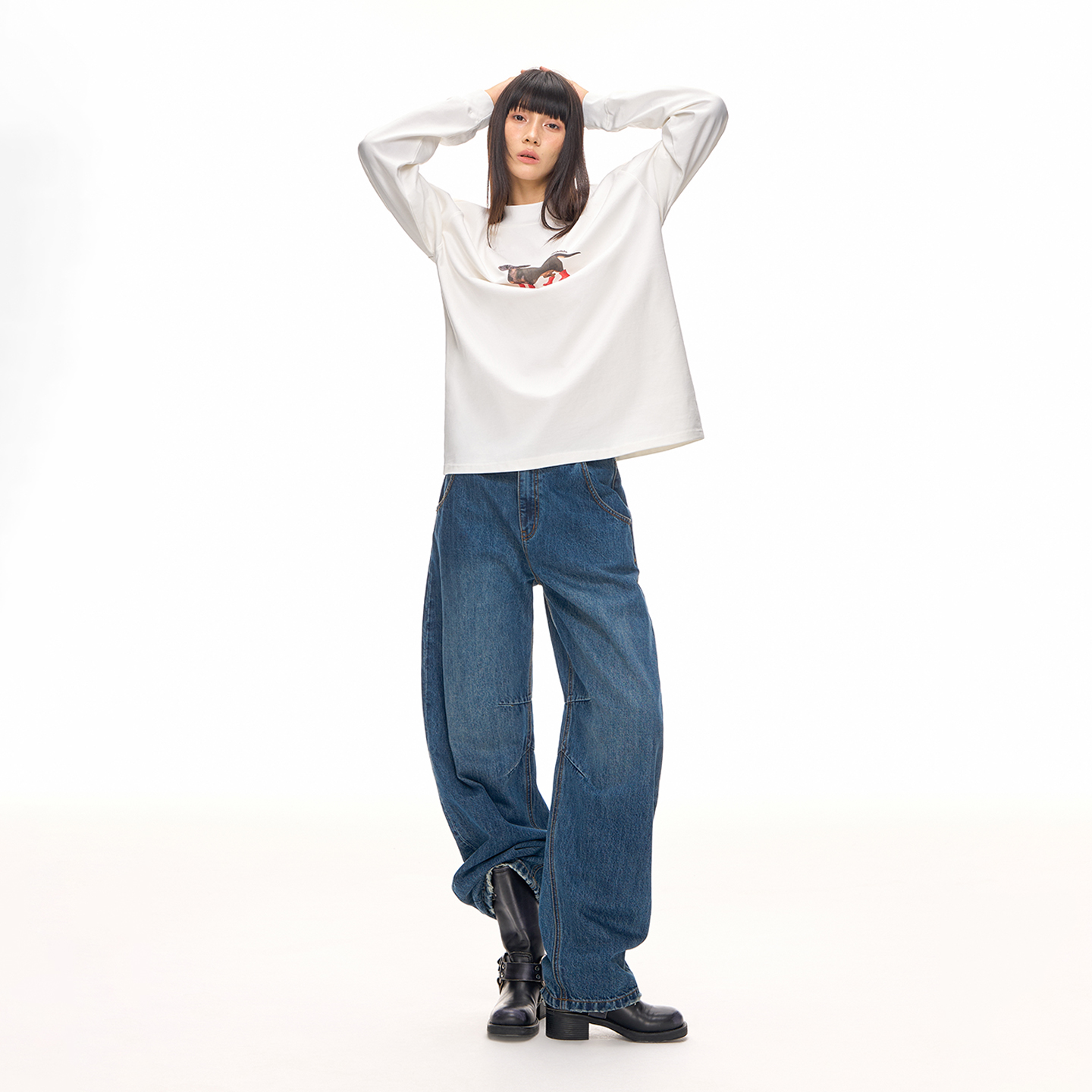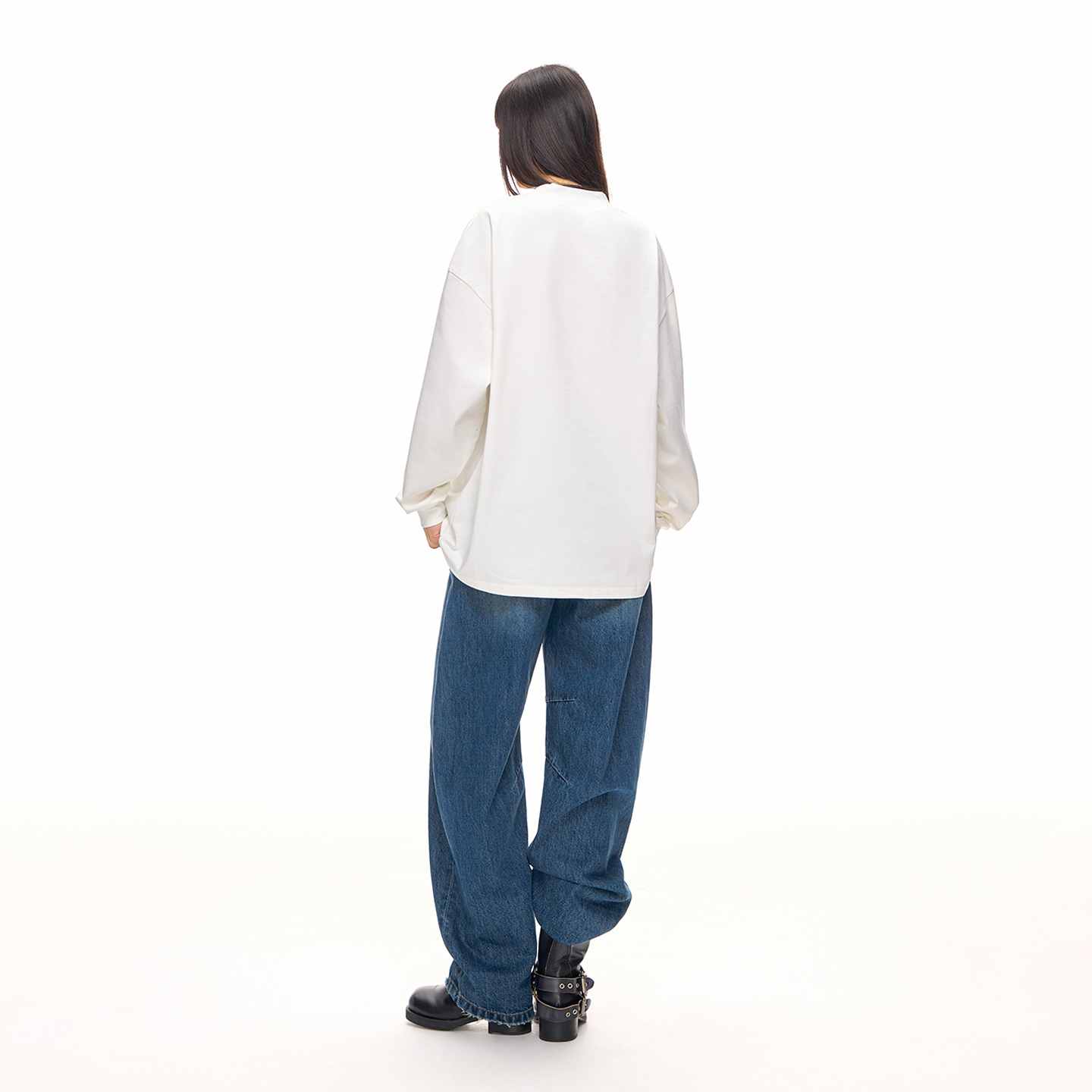 白色打底衫 秋冬季 潮流字母上衣服A t恤男2025新款 班尼路双面绒长袖