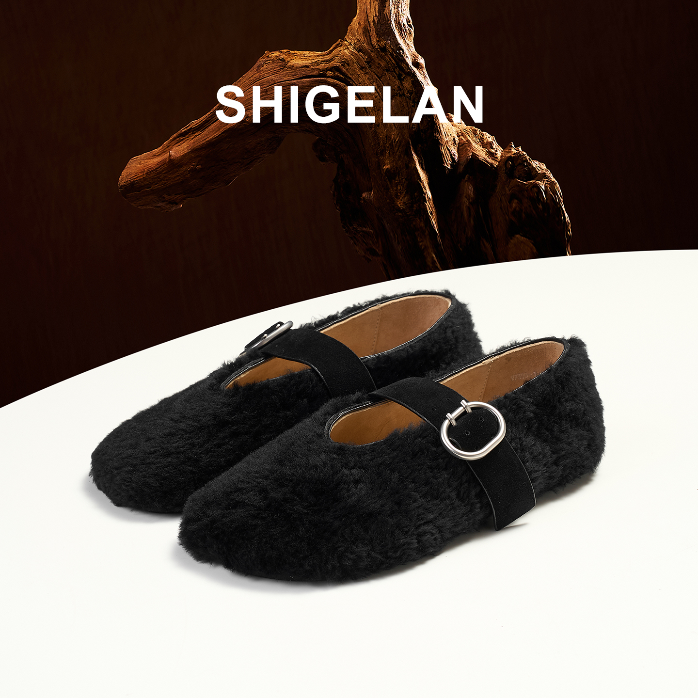 休闲舒适平底单鞋 诗歌兰2025新款 加绒保暖玛丽珍鞋 女鞋 女潮 毛毛鞋