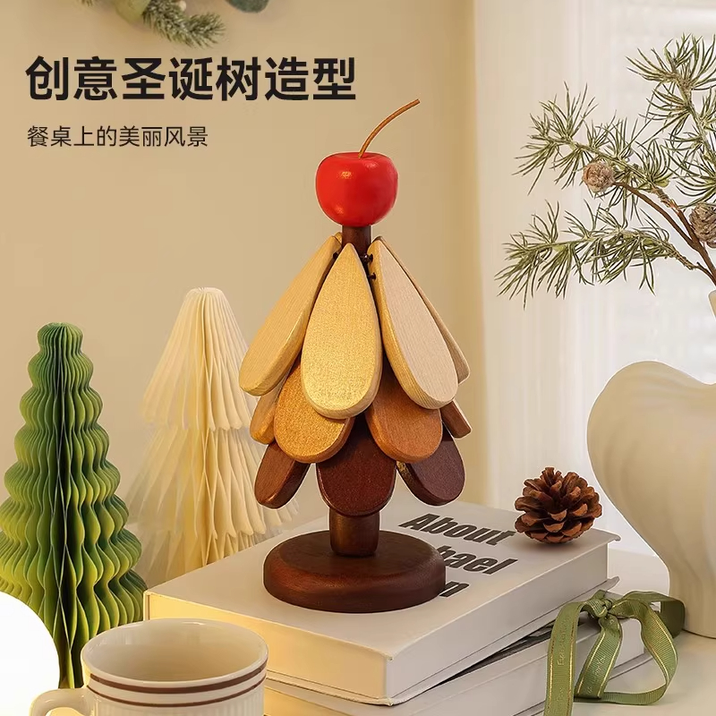 圣诞树隔热垫防烫垫新房婚房乔迁家具餐桌摆件实木锅垫折叠杯垫