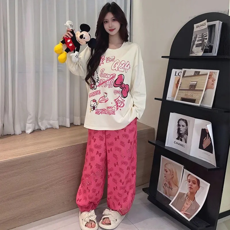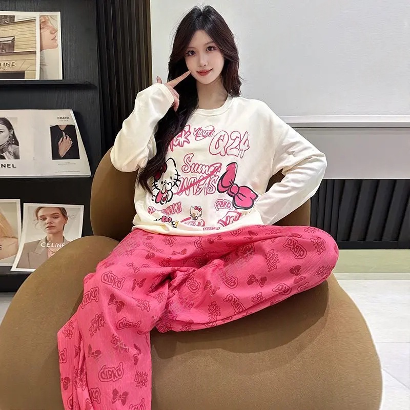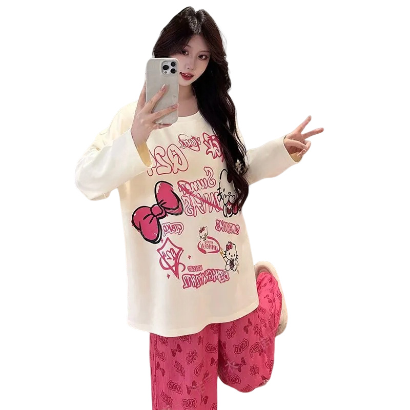 tbh野兽派家居Hello 秋冬可外穿睡衣女 Kitty全棉法兰绒家居服套装