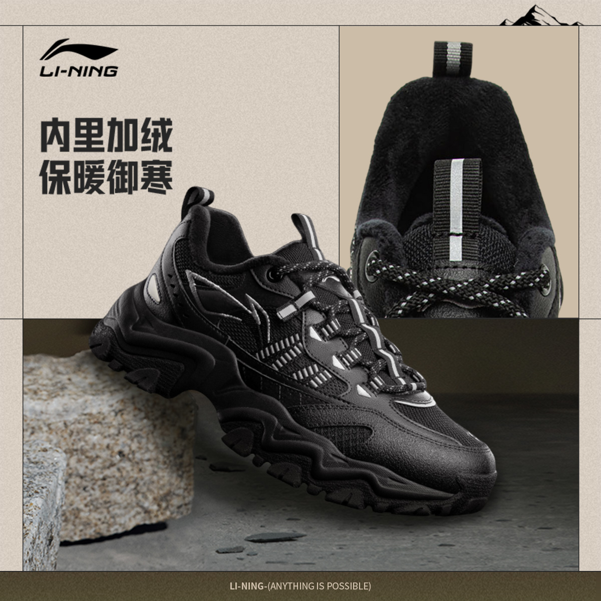圆头反光潮流加绒低帮运动鞋 李宁山行WNTR 2025新款 男鞋 LOW休闲鞋