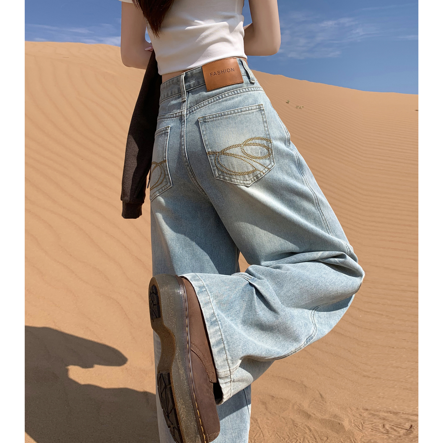 女冬40933286 100%棉复古高腰阔腿直筒牛仔裤 艾诺丝雅诗 建模裤