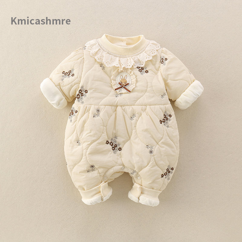 婴儿衣服冬装 新生女宝宝加绒夹棉连体衣满月加厚保暖外出哈衣爬服