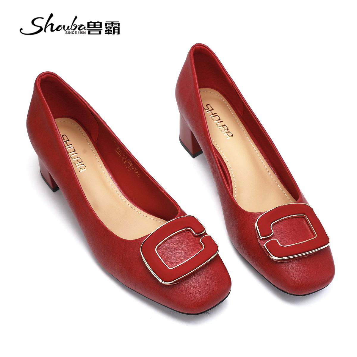 2025秋季 婚鞋 新款 女粗跟中跟百搭通勤小皮鞋 软底浅口单鞋 兽霸女鞋