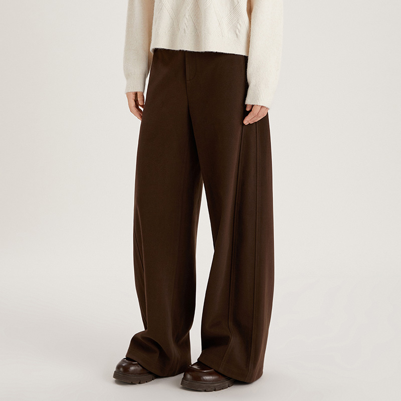 新款 2025秋季 百搭简约 女直筒休闲裤 PIT复古咖色高腰阔腿长裤