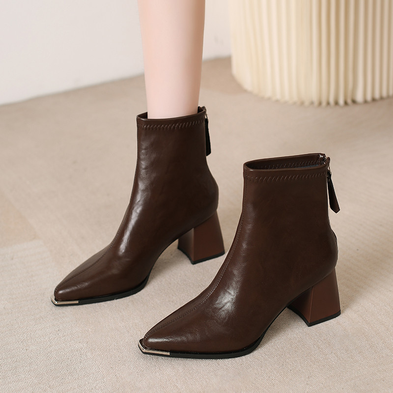 粗高跟马丁靴女2025新款 秋尖头瘦瘦显脚小气质配裙子白色机车短靴
