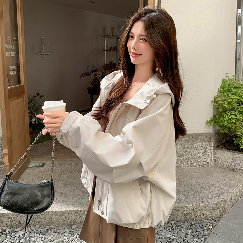 早秋防风外套通勤风连帽女2025春秋新款 小个子宽松休闲百搭短上衣