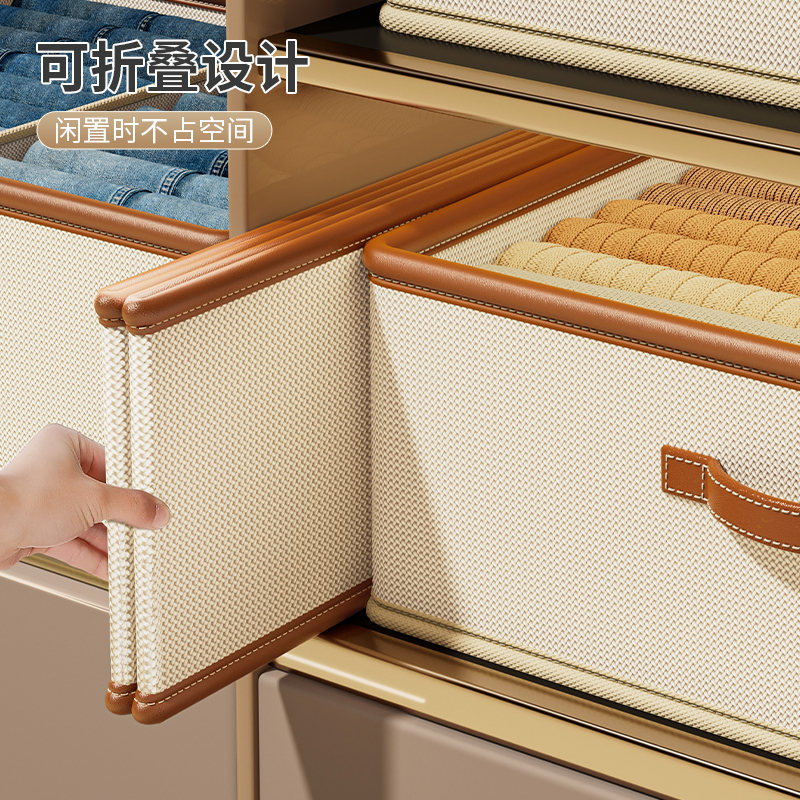 拍1发4衣服收纳筐神器布艺装 子整理盒 衣物衣柜分层收纳箱家用框裤